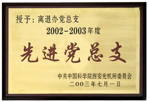 2003年 西安光机所党委授予离退休党总支“先进党总支”
