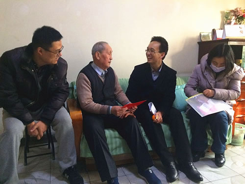 在2017新春佳节即将来临之际, 西安光机所党委书记、副所长马彩文、副所长、所工会主席高立民、所党委委员、综合处处长张岗峰等党政领导,在工会、党办、离退办等部门领导陪同下,于1月23日,对我所离休老干部、老党员、老专家、困难党员以及困难职工等共77人进行了集中走访和慰问,并送上节日的慰问和新年的祝福。