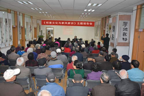 3月30日上午,《邻里文化与家风家训》主题报告会在友谊路园区离退休职工活动中心开讲,西安市委党校文化部主任王雪婴教授应邀作讲,离退休职工及家属约300人到会聆听了报告。