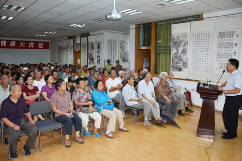 李全义主任医师首先从病人的角度出发,给大家讲了看医生需要注意的几个问题、几种常见疾病家庭处理的方法、判读是否需要住院的几种情况等内容,简单实用的讲解让大家掌握了看病少走弯路的方法。随后李全义主任围绕腰椎疾病、颈椎疾病、骨质酥松症的主要发病机理、临床表现,辅助检查,治疗现状与问题,预防原则和预防方法等几方面内容进行了系统全面的阐述。重点针对腰椎间盘突症的家庭保守疗法和手术方法进行了讲解,通过脊柱内窥镜手术技术的视频演示,让大家清晰的明白了治疗新进展。李主任通俗易懂的讲解、图文并茂的PPT,解开了很多老同志看病时的困惑和疑虑,大家感到受益匪浅。讲座结束后李主任对许多老病号进行了复诊,有病痛的新病号进行了答疑解惑,活动在融洽的医患互动中结束,收到良好效果。会后离退办还给参加讲座的老同志发放了卫生部印发的健康宣传册《中老年人中医养生手册》等资料。
