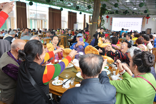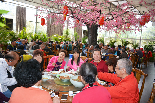 中午同志们集体前往高陵老磨油饼庄园共进午餐,大家欢聚一堂,一边品尝特色菜品,一边叙往事、唠家常、送祝福,大厅内外处处呈现温馨、祥和的景象。随后又集体参观了高陵奇石博物馆,馆内形态各异、珍惜奇特的石头让老同志们大开眼界。特别是看到由石头做成的一盘盘美食造型更是让老同志们赞叹我国民间艺人的智慧。