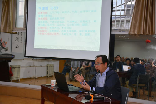 李静副主任首先向大家介绍了体质的概念和体质学说的研究范畴,让大家对体质学及其研究方向有了初步的了解。接着讲解了体质形成的影响因素,包括先天因素、年龄因素、性别差异、地里气候因素、疾病和营养状况等因素;介绍了体质的五种分类方法,并重点宣讲了目前医学界推行的体质辨识法,也就是2009年4月9日中华中医药学会正式发布的《中医体质分类与判定》标准,总结提炼了中医体质学说,将人类体质分为平和质、气虚质、阳虚质、阴虚质、痰湿质、湿热质、血瘀质、气郁质、特禀质九类体质,该标准是我国第一部指导和规范中医体质研究及应用的文件,旨在为体质辨识及与中医体质相关疾病的防治、养生保健、健康管理提供依据,使体质分类科学化、规范化。他并就每种体质的总体特征、形体特征、常见表现、心里特征、发病倾向、对外界环境适应能力进行详细分析和讲解。随后李静博士讲解了不同体质的特征和中医调理方法,为大家详细地介绍了体质学在我们生活中的具体应用。最后,李主任还介绍了中医体质分类的判定标准和方法,并针对性地给出了饮食、起居、运动、用药等调理建议。讲座结束后,李主任还就大家关心的问题进行了耐心解答,并与有疑惑的老同志进行了深入交流,广大老同志非常满意。