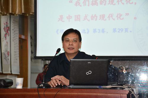 为了让广大离退休党员更加深入学习领会十九大报告精神,12月13日上午,所离退休党总支特别邀请西安交通大学马克思主义学院政治学与行政学系主任、马克思主义研究所所长、博士生导师陆卫明教授,在友谊路园区离退休职工活动大厅做了一场题为《当代社会主义新发展》的专题辅导报告。离退休党总支全体委员,离退休6个党支部的支部书记及委员,离退办全体工作人员、离退休党员职工等120余人参加了专题学习,本次也是党员第六次集中学习十九大报告有关内容。离退休党总支书记、离退办主任李广路主持会议。